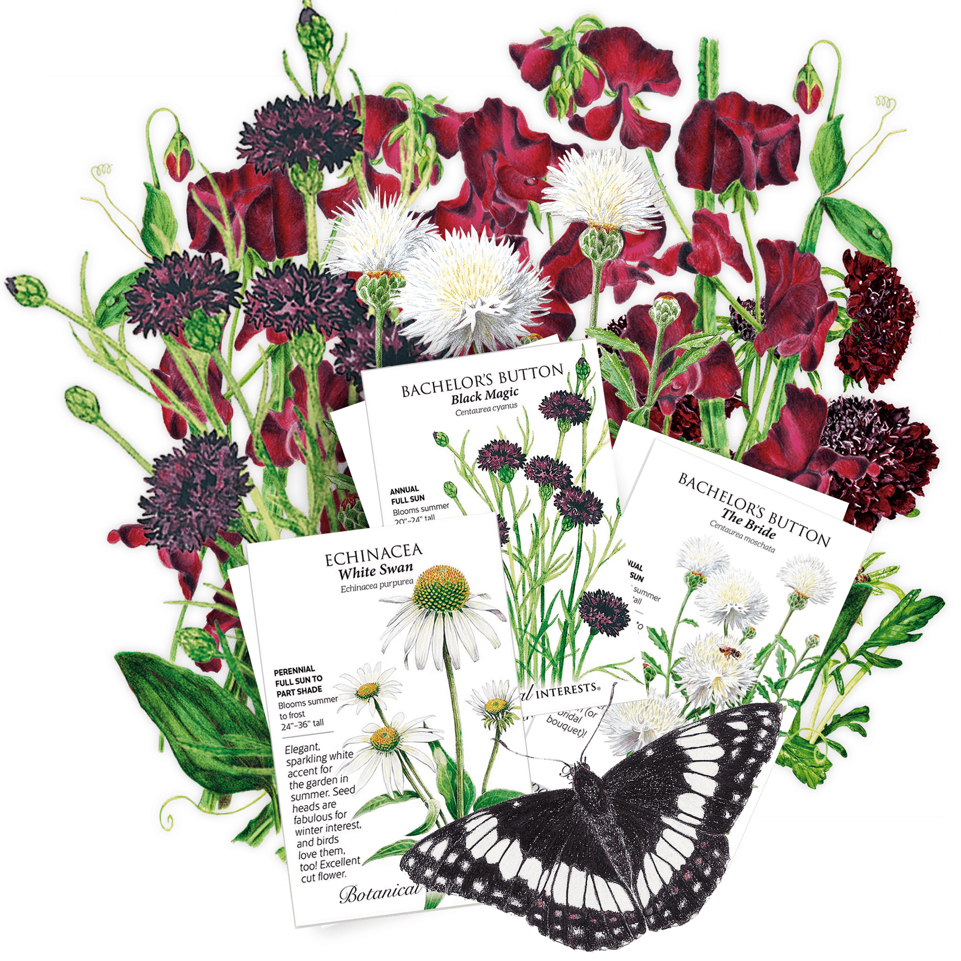 - Black Magic Bachelor's Button: Enchant your garden with this near-black, frilled flower, perfect for adding drama to any bouquet.