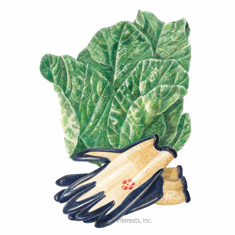 Variety Info: Large, dark green oval leaves with serrated edges up to 10" long, and 8" wide
