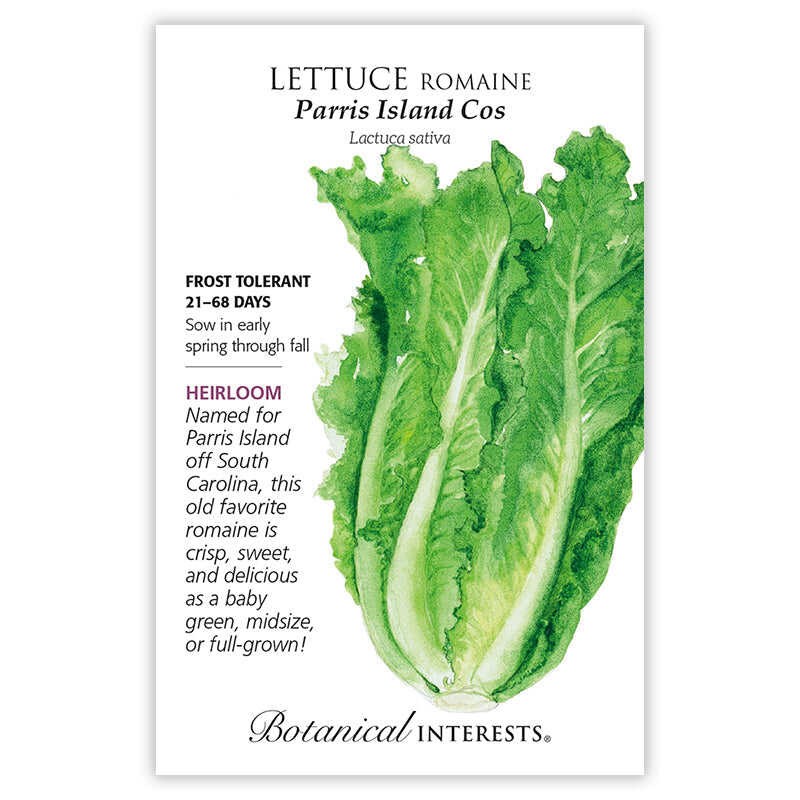 Variety Info: Upright growth with medium green, slightly savoyed (crinkled) leaves, crisp ribs, and buttery-green heart. 'Parris Island Cos' is a romaine-type lettuce developed around 1950 by Clemson University, and named after Parris Island in South Carolina.