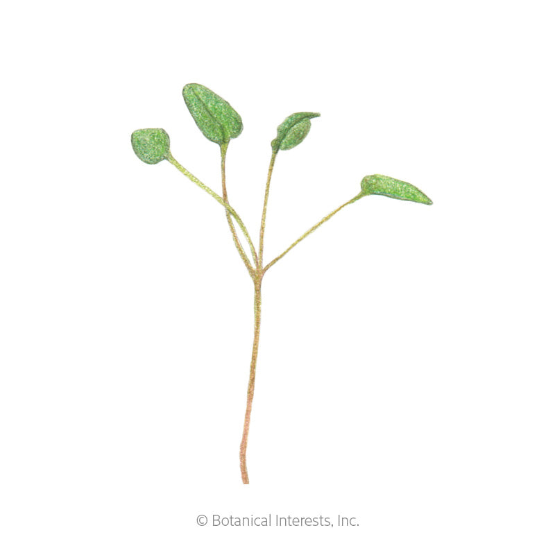 Harvesting: When seedlings emerge, the first pair of leaves to show are the cotyledons, which can look very different from the leaves that follow, called "true" leaves. Microgreens are ready to harvest when they have cotyledons, or when the first true leaves have begun to form, depending on preference. Cool growing temperatures may slow the expected amount of days to maturity. Using scissors, cut microgreens just above the soil line when you are ready to use them.