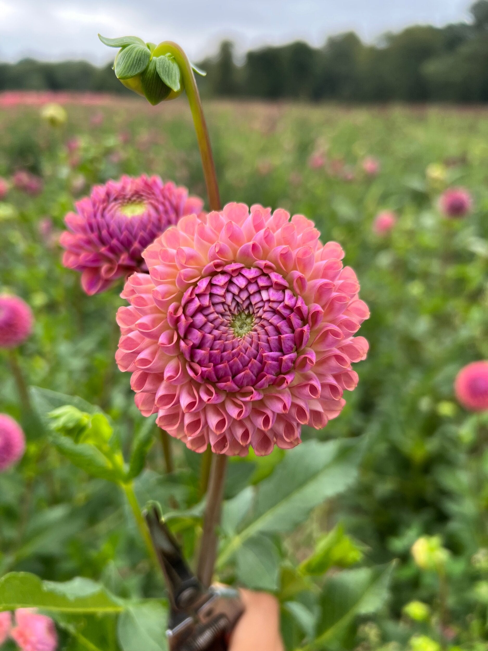 Caitlin’s Joy is everything you want in a dahlia. She changes throughout the season from a vivid pink and purple to a smoky mauve. The perfect plant height and relentless bloomer— she’s got it all. We harvest tens of thousands of blooms from this variety every season! A farm staple and a gardener's joy—even if your name isn’t Caitlin! We can't recommend this one enough for beginners looking to begin their dahlia growing journey.