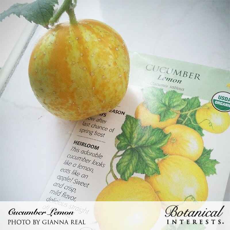 Variety Info: 3 ½" x 2 ½" non-bitter cucumbers with yellow skin and white flesh. 'Lemon' cucumber, originally a popular Australian variety, was introduced in the U.S. in 1894. It is great for both slicing and pickling. It has very little cucurbitacin, so it's non-bitter, burpless, and easy to digest.
