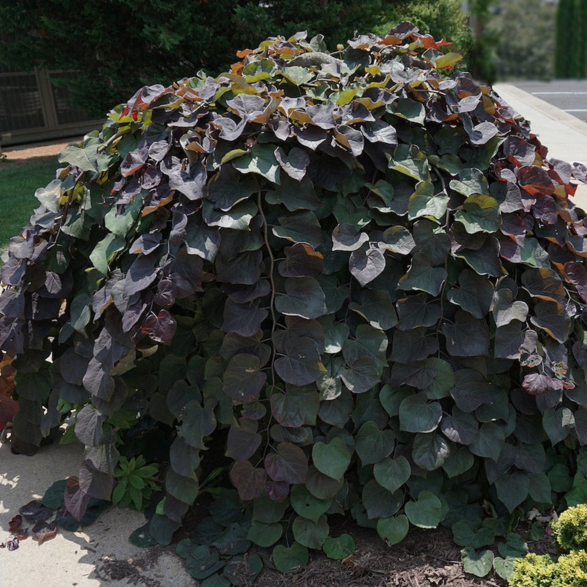 The Ruby Falls Redbud is a compact tree, typically reaching 6 to 8 feet tall and 5-6 ft. wide. Its modest size makes it ideal for smaller yards or even large containers, and its weeping habit ensures it remains an elegant, manageable centerpiece in any space.